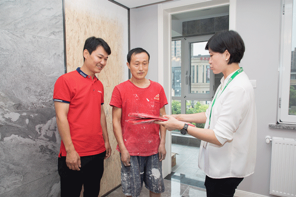 进入安装阶段的工地,即将开始张贴墙纸、安装设备的工作。巡检小组对安装过程中容易出现的问题与工人进行了交流,要求工人仔细施工,确保工程保质保量的完成。