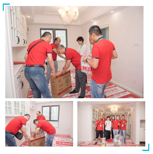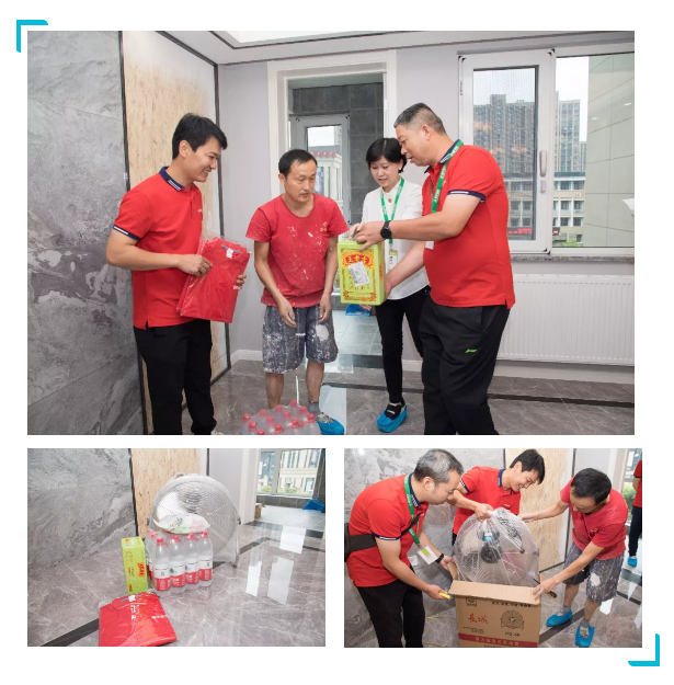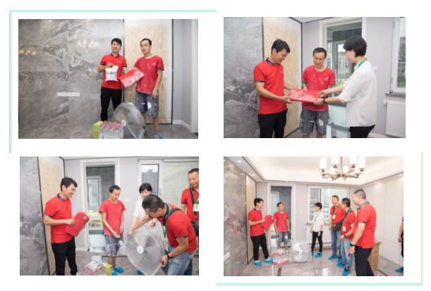 澳华装饰首席巡检官、副总经理笪逸奇带队,在对3家工地巡检的同时,也为他们送上夏日里的清凉。