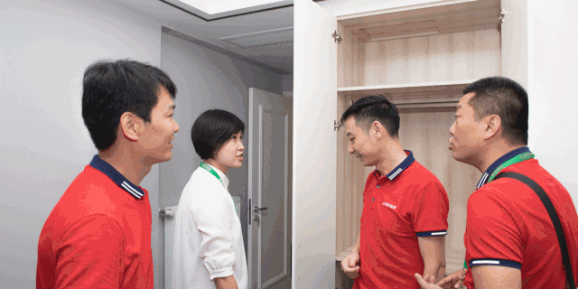 慰问工人之余,巡检小组也没有忘记认真的检查,对柜门安装是否到位、乳胶漆是否合格等进行了详尽的检查。同时,对于在木作安装中出现的一些问题,巡检小组也与一线工人们进行了认真的讨论。