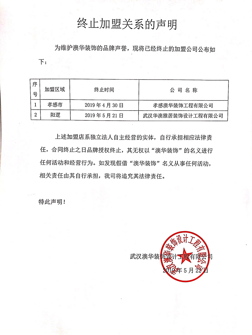 当前位置:首页 > 6686登录澳华 > 澳华新闻 > 终止加盟关系声明