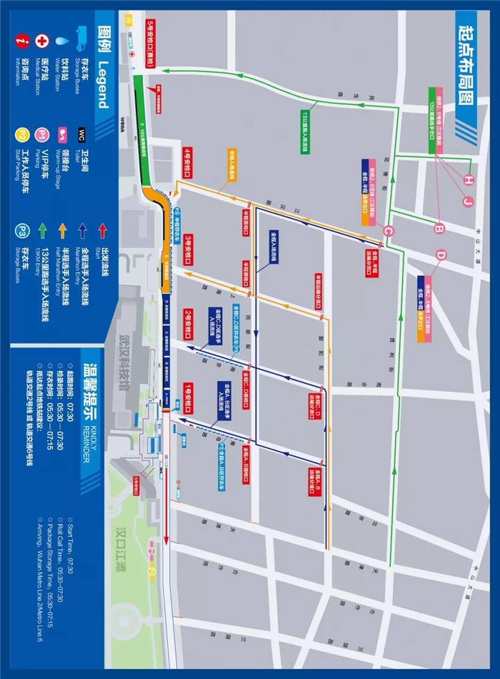 居住于起点附近选手建议步行至鄱阳街,根据指示牌,由相应区域入口进入集结区;沿江大道两侧封闭禁止通行。