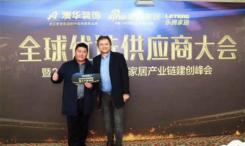 ▲ 瑞士卢森地板对华业务总经理弗兰克、6686平台区代理商曾庆丰