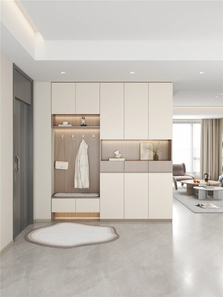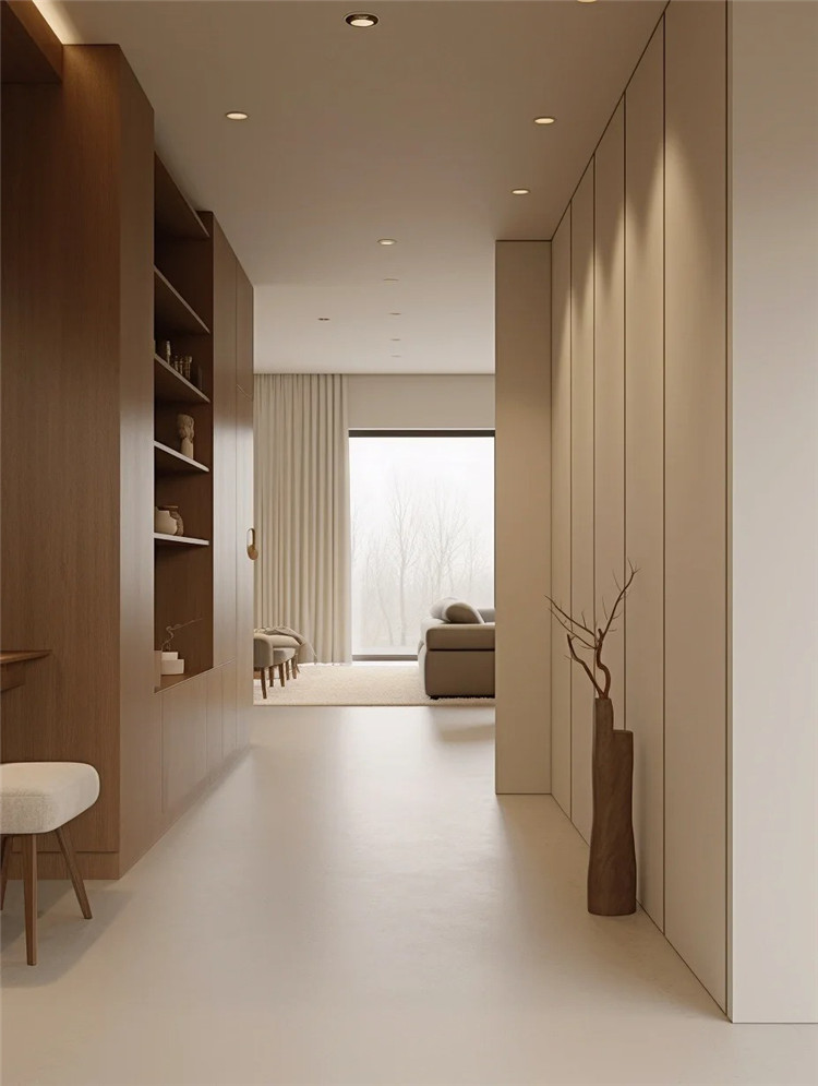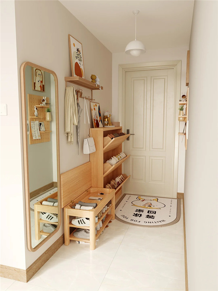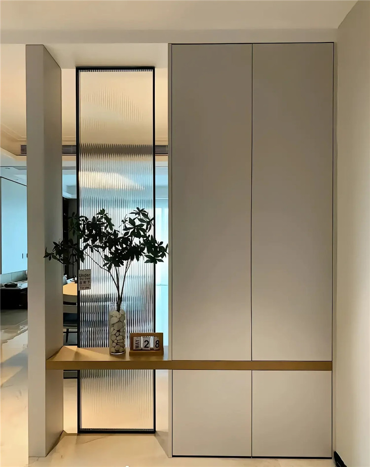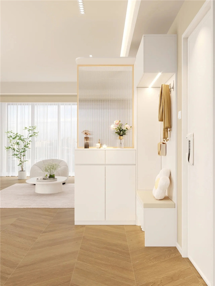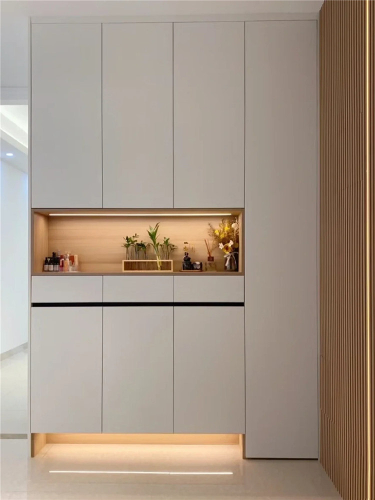 值得注意的是,如果走廊本身空间就偏狭窄,做鞋柜后,需尽量留出1m以上的宽度,以免影响日常行走,增加压抑感。