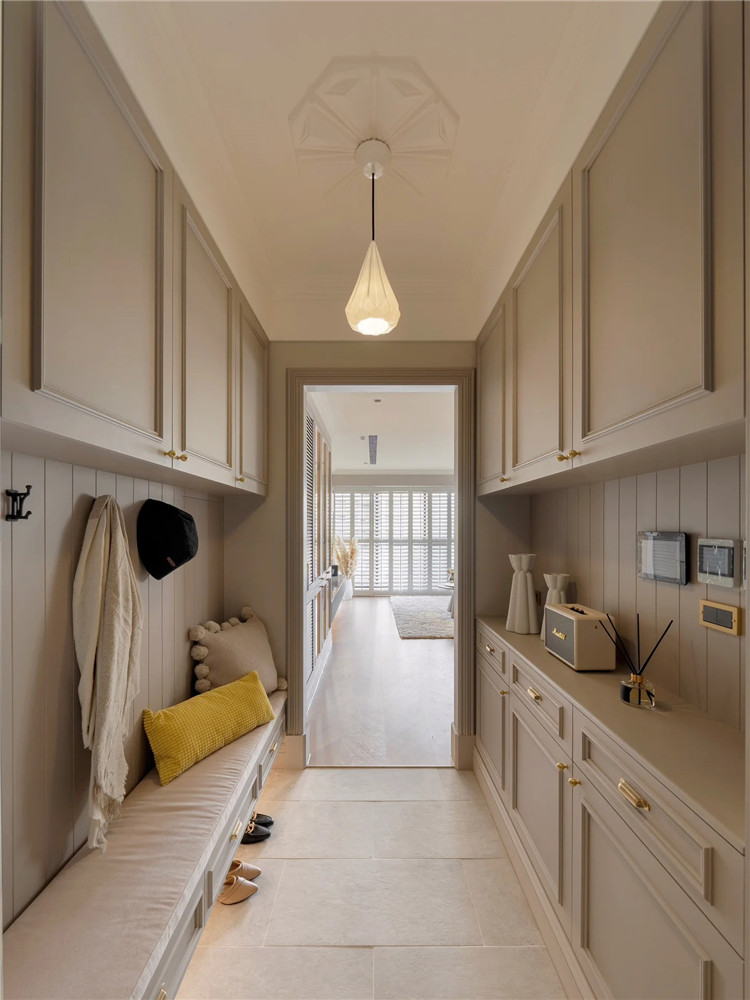 还有一些户型,入户空间非常充足,这时候完全可以将玄关区打造成一个步入式鞋帽间,进一步完善空间机能。