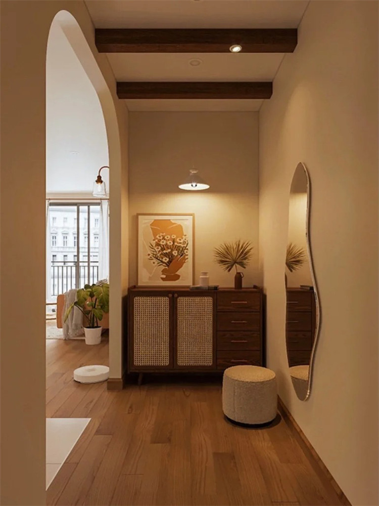 玄关是家装中重要的一个位置,从内到外的一个过渡,虽然可利用的空间十分有限,但只要多花一点小心思,就可以让自己的家打破单调,获得轻松而愉悦,独特而美好的归家仪式感。