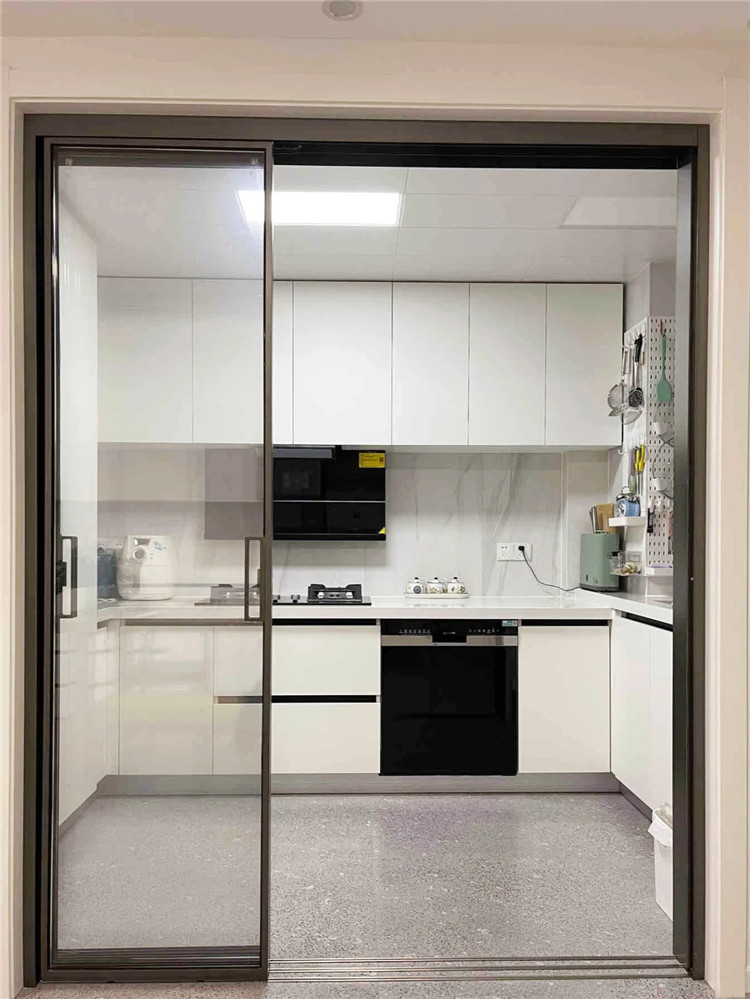 早期厨房装修喜欢安装地轨推拉门,但是会让地面有卫生死角,很多污渍进入轨道槽内 6686官方版app,就很难再清洁出来,目前比较流行的是做吊轨推拉门与隐形地轨推拉门,可大大减小清洁难度。