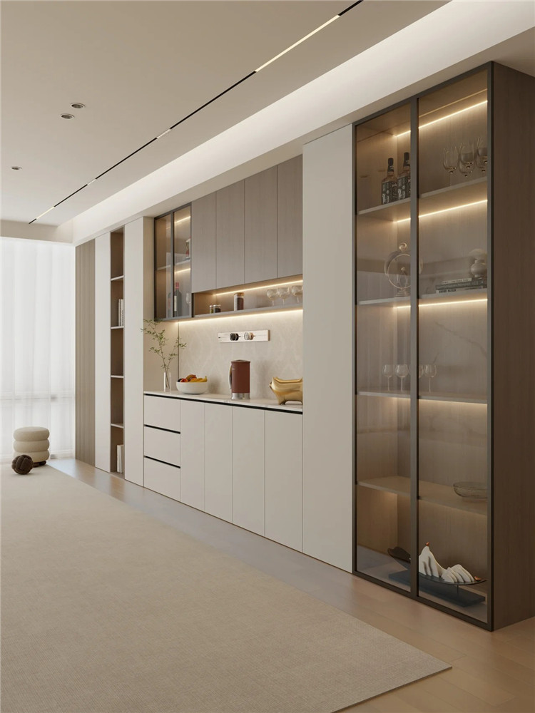 如果不能保证,每个月都给柜内做清洁,建议家里的柜子,不管是电视墙柜、玄关柜还是储物柜等,都做成封闭式。