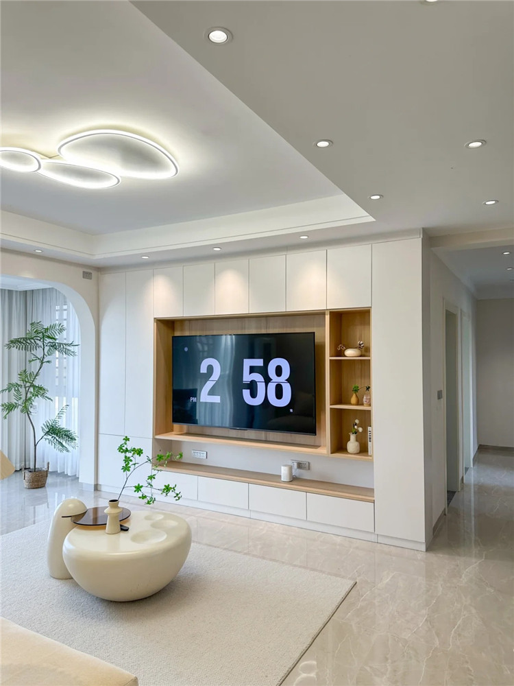 尤其是电视柜,强烈建议提前预留一个空间,将插座、电线等全都隐藏,减少落尘点。