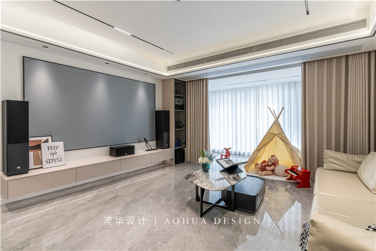 2、在装修初期,就应将投影仪的嵌入位置纳入规划之中。嵌入顶面隐藏效果更好,美观度更佳。