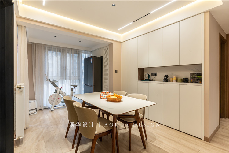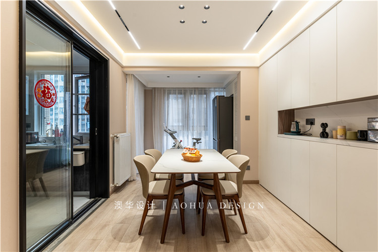 在【世茂锦绣长江】这个项目中,就将冰箱完全嵌入餐边柜,一体式设计简约又高级。