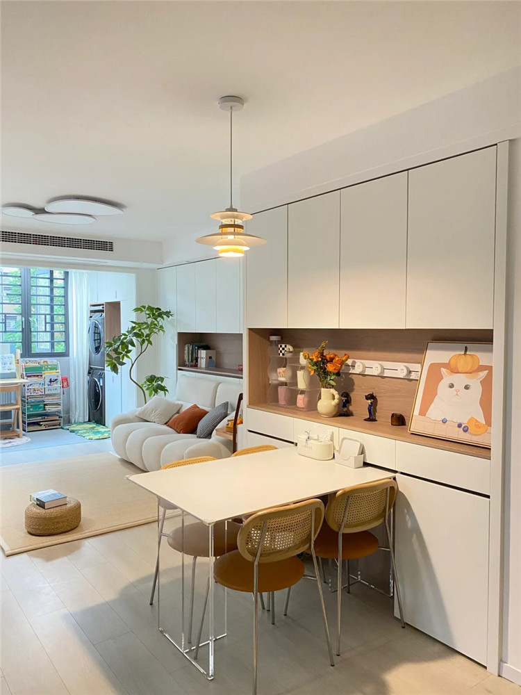 对于空间不大的餐厨区域,常常会遇到收纳空间不足的问题。而如果选择做开放式厨餐厅,又难以避免油烟的侵扰。