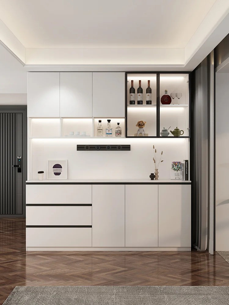 所以,柜下/柜内灯的设计十分必要,除了方便居住者找东西,还能提升照明氛围,增加空间的颜值。