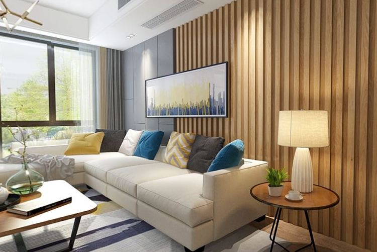 栅栏式的木质背景墙搭配上水泥墙面,两种自然感元素的碰撞让家居空间更具设计美感 6686官方版app。