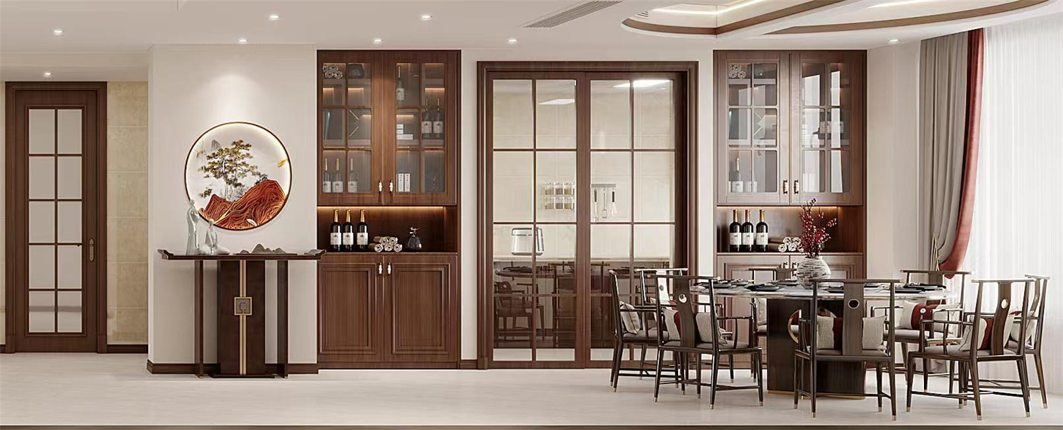 就餐区域被设计在客厅区域的延长处,有效提升空间利用率 6686官方版app,镂空深木色橱柜简约而又不失自然风情。