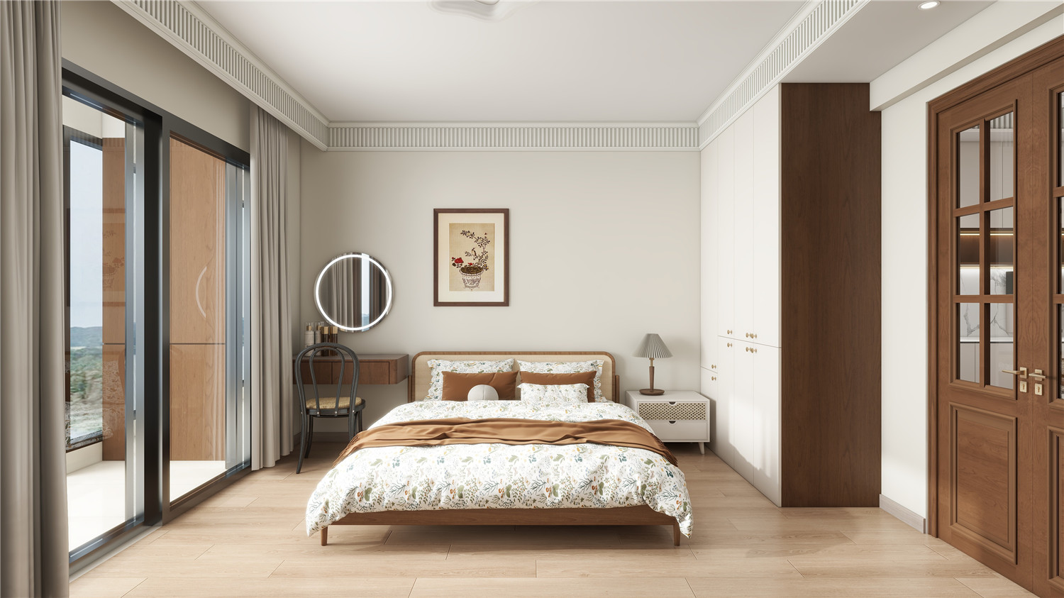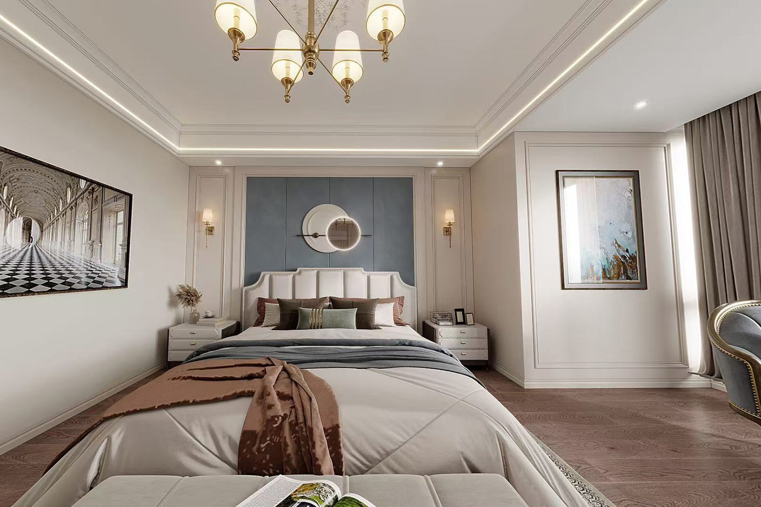 卧室沿用了与整个房屋一致的元素,通过各类线条的走向、家具的造型处理营造一种典雅高贵的大气美。