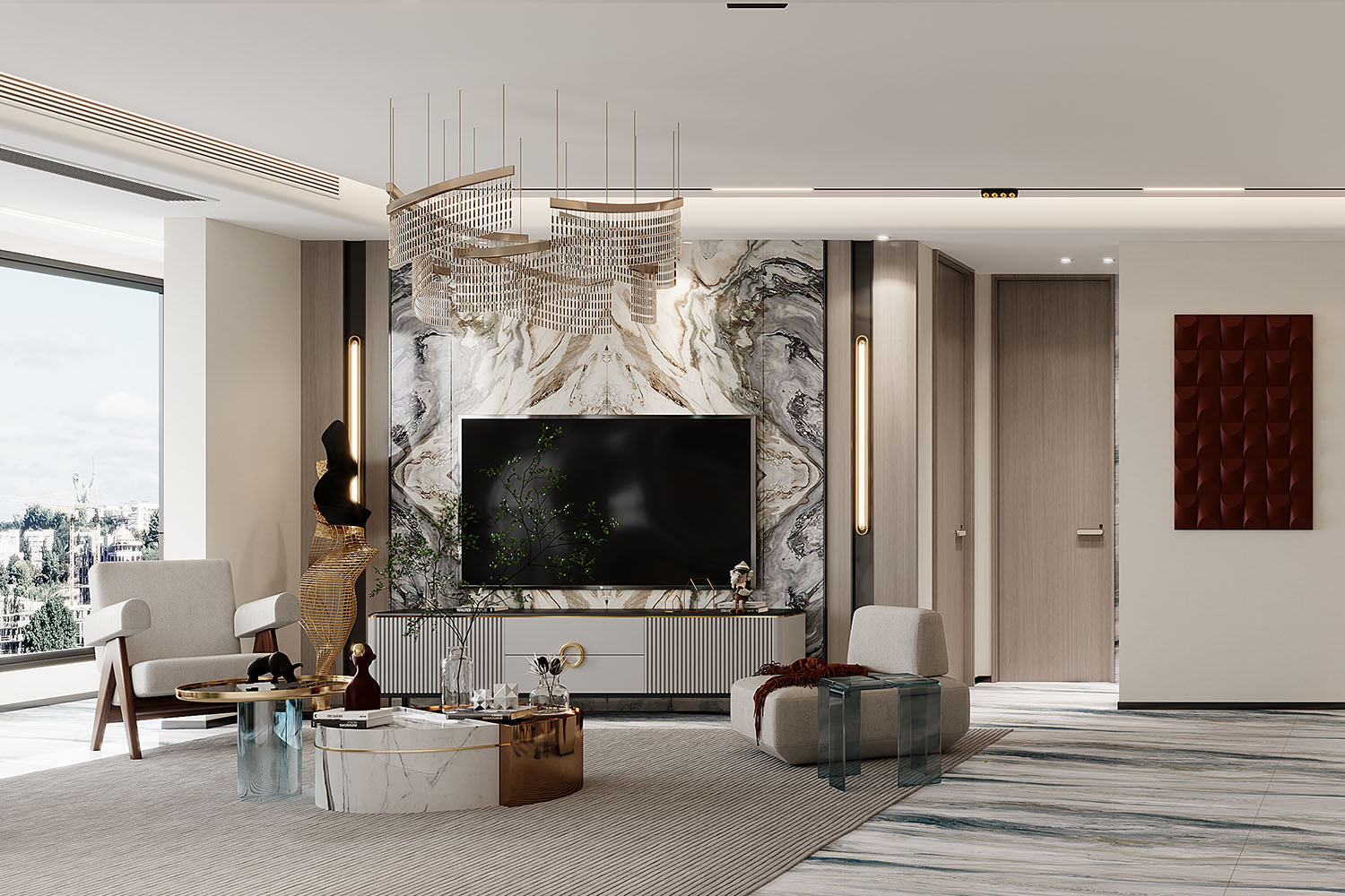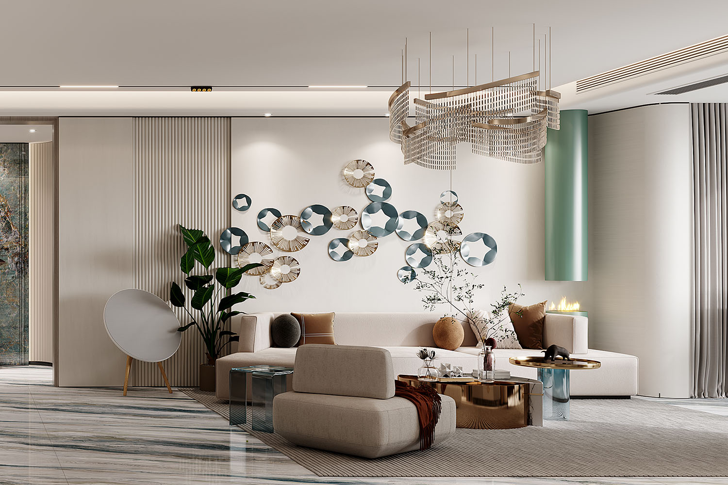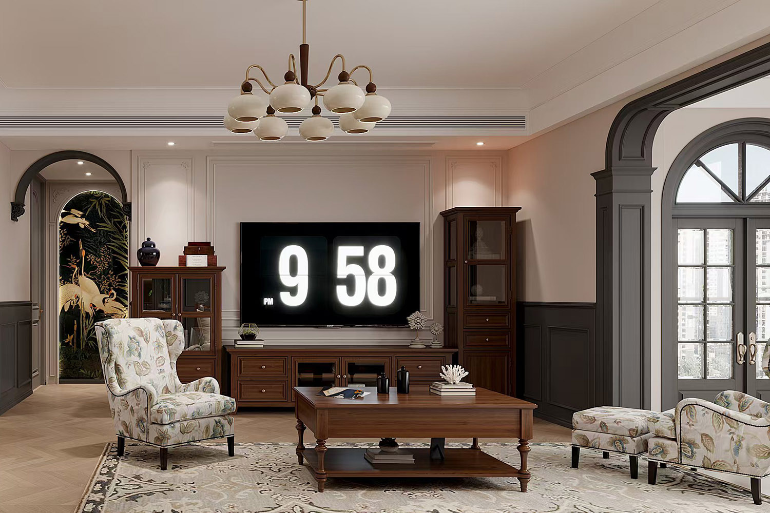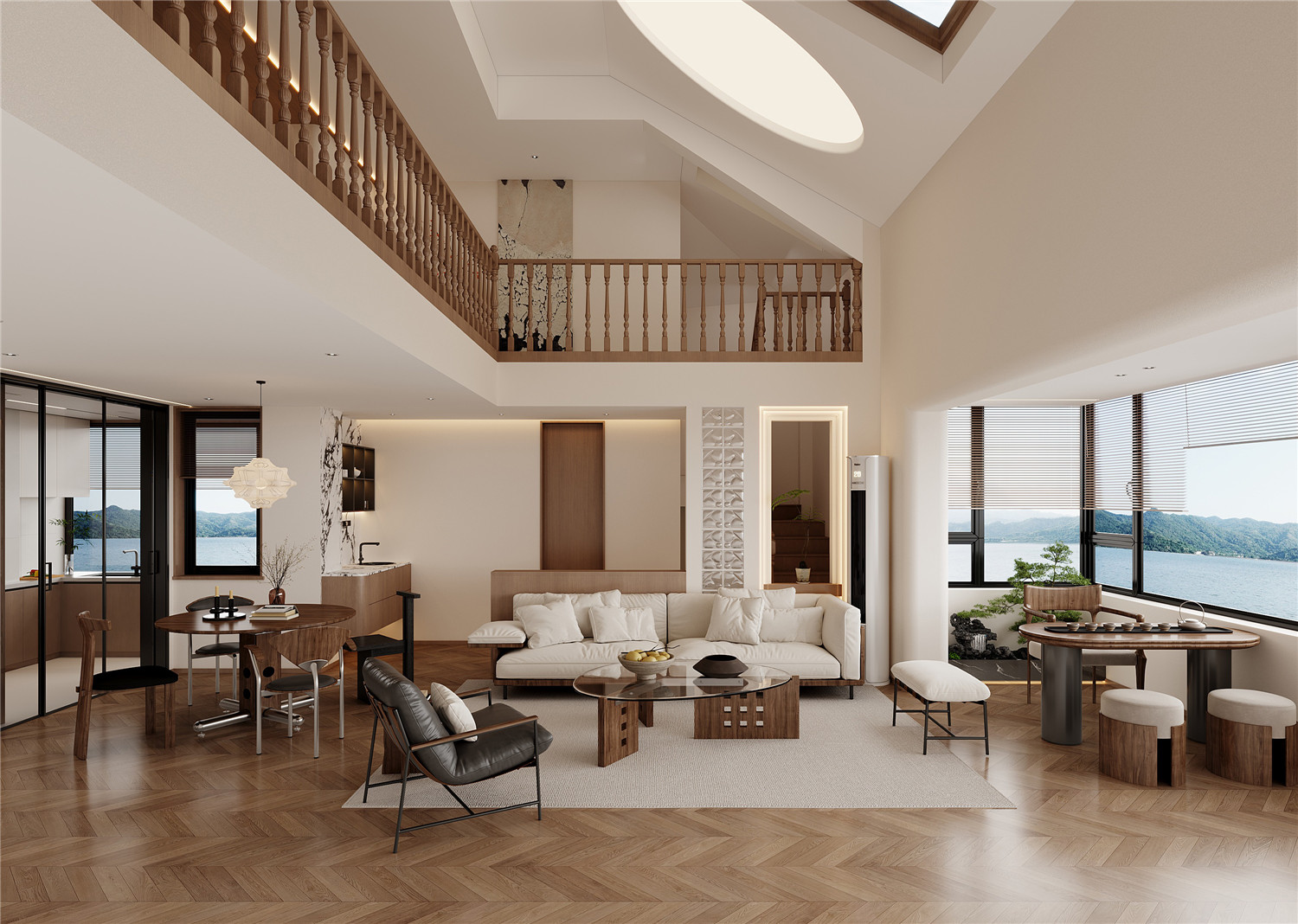 餐厅区域沿用了与客厅空间相同的配色与用材,不同的是设计感十足的吊灯与清新感十足的花鸟挂画 6686官方版app,让就餐区域多了一抹温馨靓丽气息。