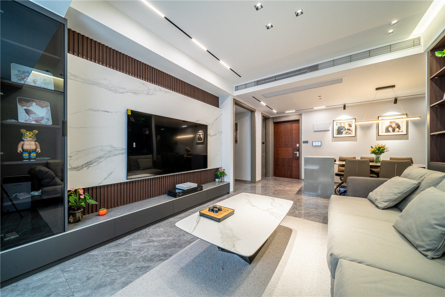 带有灰色暗纹处理的大理石墙壁简约而又不失高级感,在无形中提升家居品质感 6686官方版app。