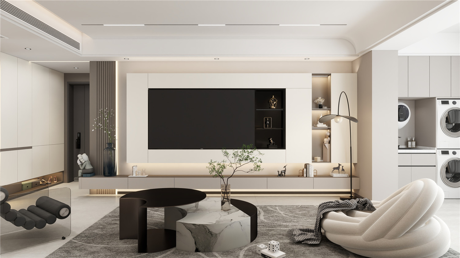 大面积的白色装饰空间,营造洁净氛围,简单的黑色点缀则打破空间沉闷气息 6686官方版app。