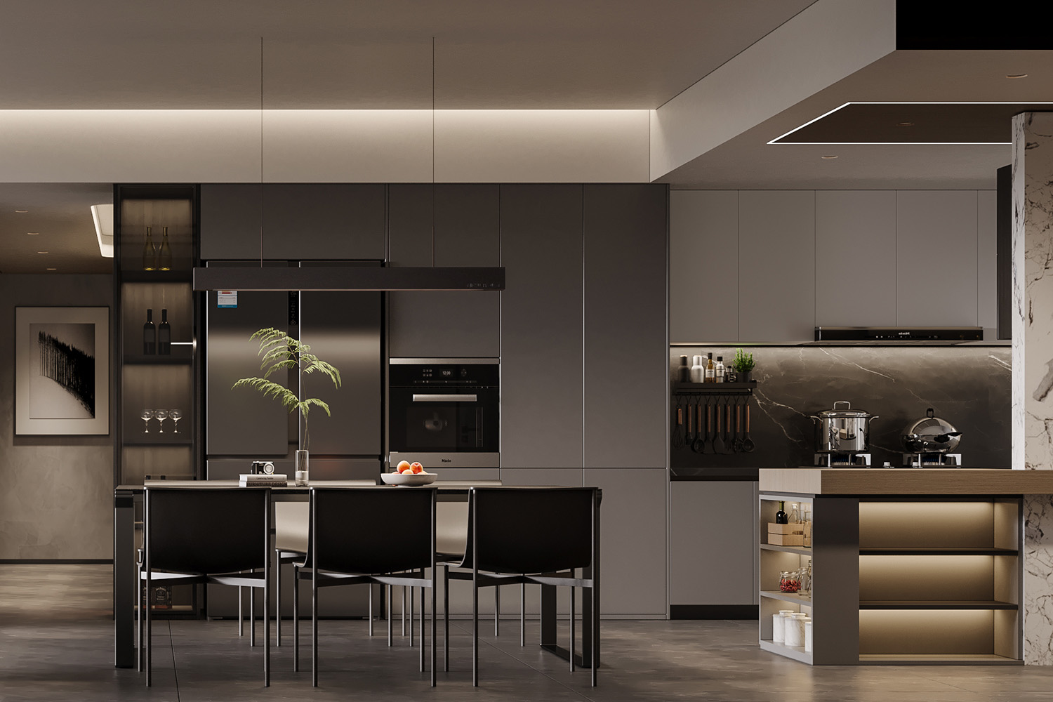 打造餐厅的精致感不需要太过复杂的装饰,餐边柜以收纳功能为主,添置灯带装饰 6686官方版app,即可呈现出时尚氛围,餐桌椅的造型尽量时尚一些,搭配水晶灯具,足以展现出大方气质。