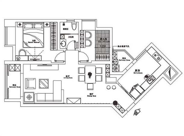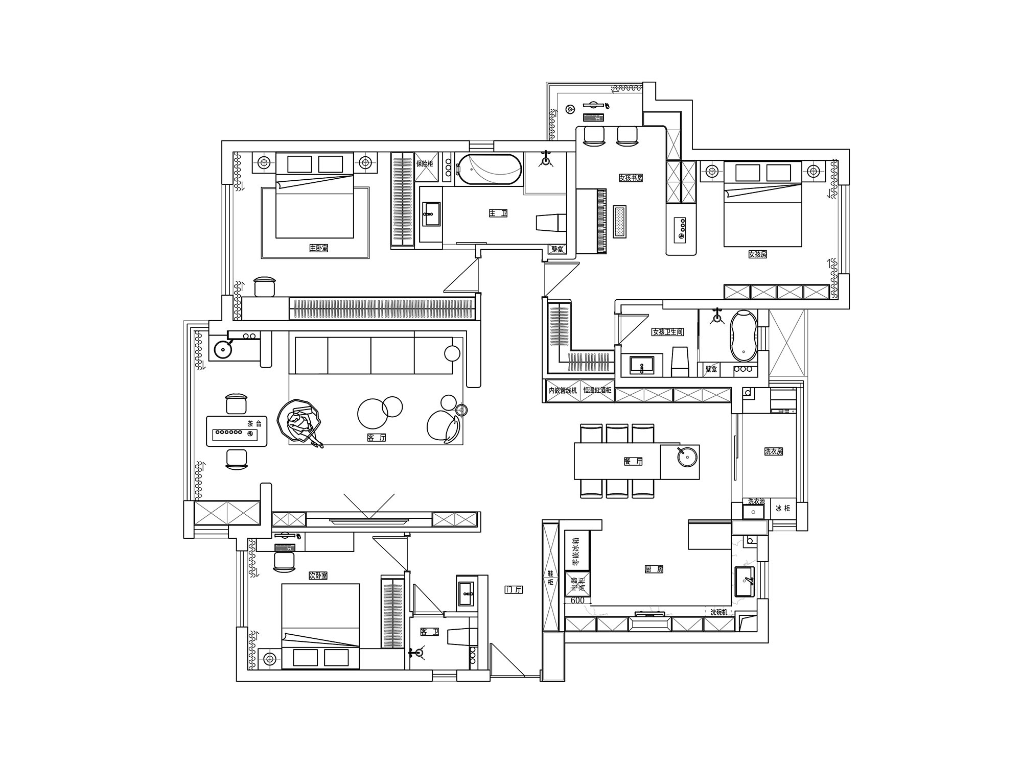 世纪江尚的这套150㎡的四居室房屋,空间户型结构相对比较复杂,如何将处于非正位置上的空间区域进行合理高效的利用成为了该户型房屋的设计难度。设计师根据业主的实际需求将两个卧室设计于对门处,以满足业主照看孩子的需求。而房屋相对比较犄角的区域则设置为厨房,如此即可将空间合理利用,又能够避免厨房区域的油烟进入生活区域空间,