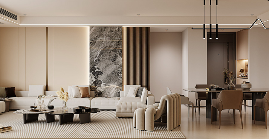 淡雅的奶油色在空间中悠然弥漫,轻柔地调和客厅的氛围,使之更显柔和与恬静,墙面则巧妙地运用拼色设计,结合经典的法式雕花与流畅线条 6686官方版app,勾勒出丰富而独具匠心的纹理与层次,为整个空间增添了一抹优雅与精致的气息。