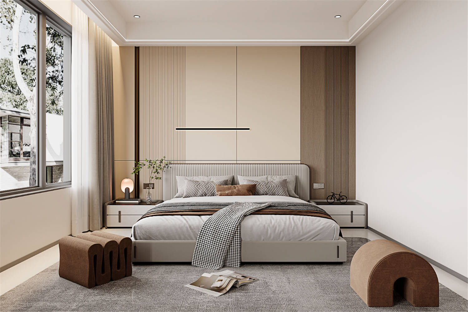 床尾融入独立卫浴空间,通过巧妙的层次感设计,将各大功能区划分得井井有条,完美塑造出独具魅力的生活质感,令人陶醉。