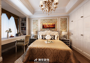 卧室使用了大量的暗纹设计,如床头柜的暗纹笔直,床具上的暗纹雕花等等 6686官方版app,这些暗纹设计相对没有那么显眼,不会破坏卧室的静谧感,同时还能在无形之中彰显欧式风的高贵典雅气息。