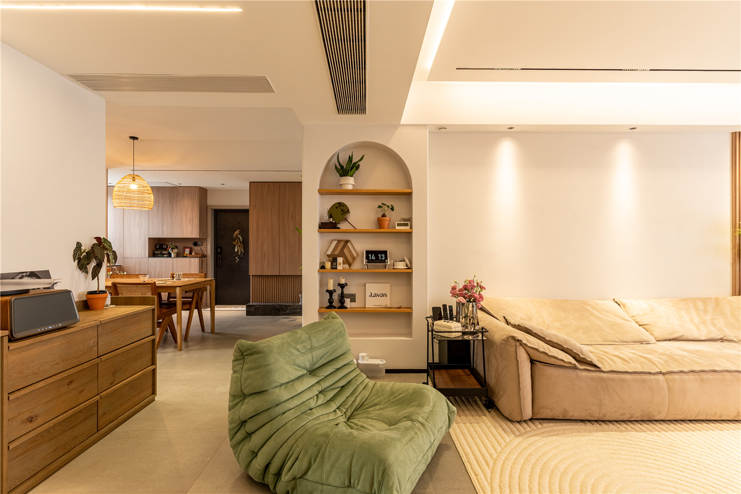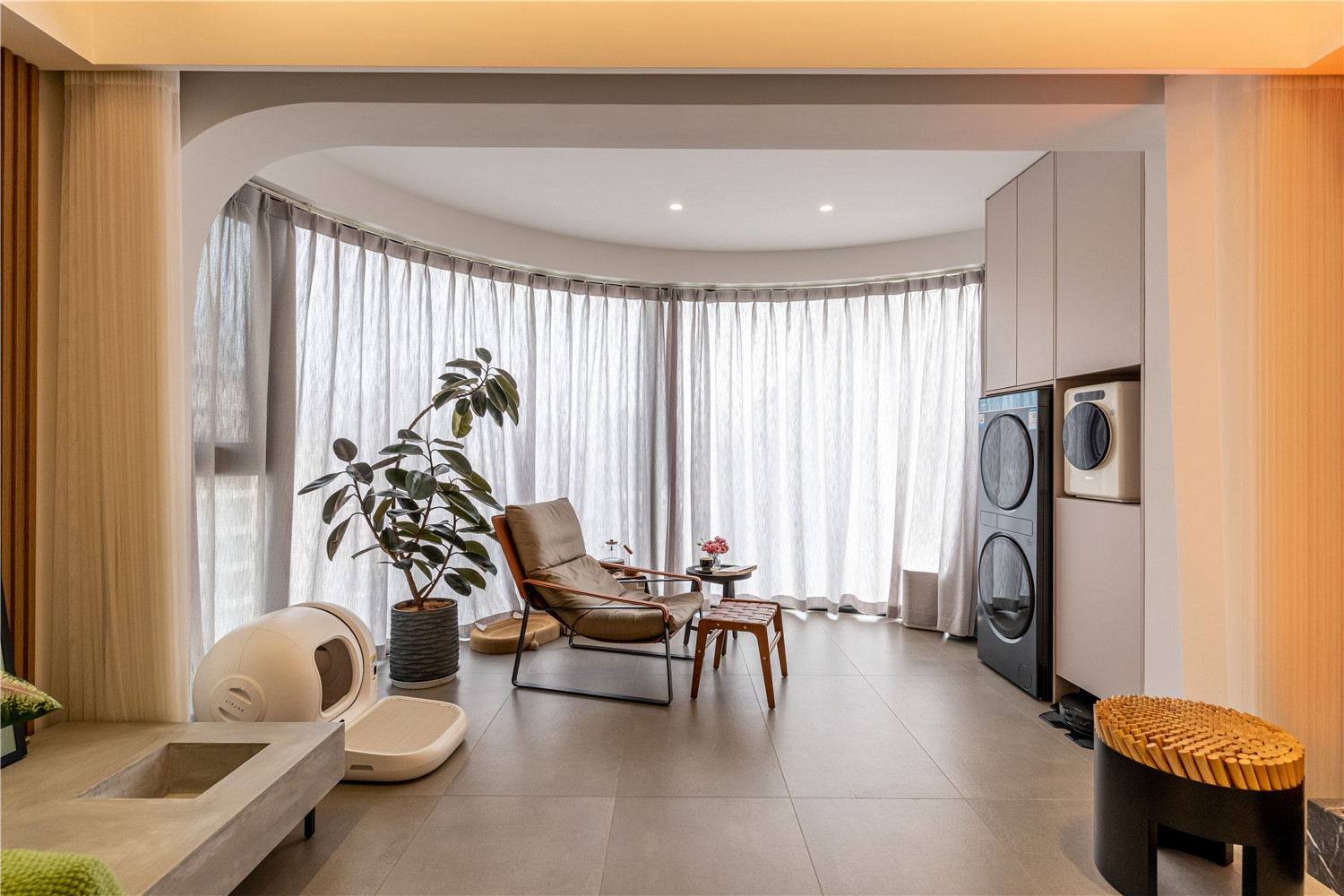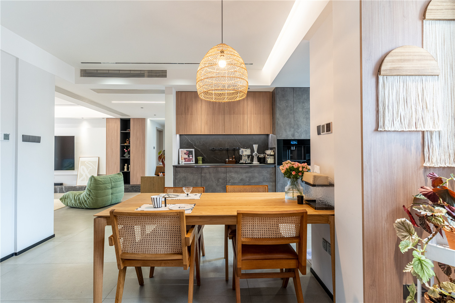 这所彭彬东湖壹号的四居室房屋面积为196㎡,空间不算小,且空间原始结构的缺陷相对比较少,因此设计师没有对格局进行过多改动,在保留原有户型结构的基础上进行了合理的装饰设计,由于过道处空间相对比较狭小且距离较长 6686官方版app,设计师在对该区域进行设计的时候就利用了色彩的搭配以及装饰元素的点缀,来提升该空间的美观度与大气感。