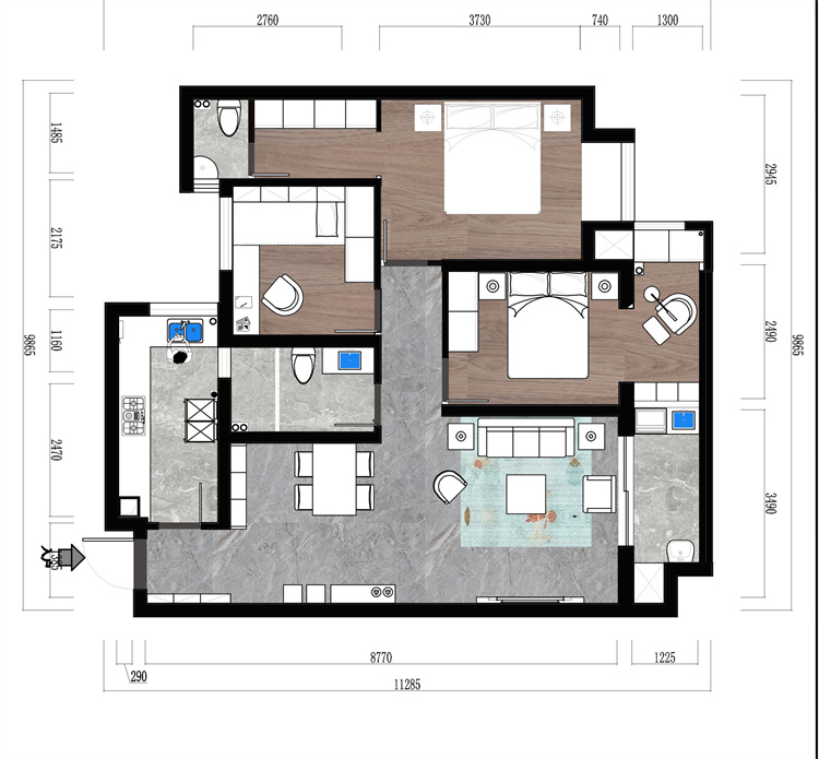 南湖壹号这套118㎡的三居室住宅整体结构相对还算比较规整,但是原有的户型结构并没有进行功能分区 6686官方版app,因此设计师需要结合业主与家人的使用需求,生活习惯以及空间的结构特点进行功能分区,为了降低室内油烟感,设计师将与外部衔接的小空间设计为厨房,以避免油烟进入生活空间,主卧区域则将旁边的墙面直接打通进行空间扩大,同时融入衣帽间设计与卫浴设计,提升主人的生活品质。