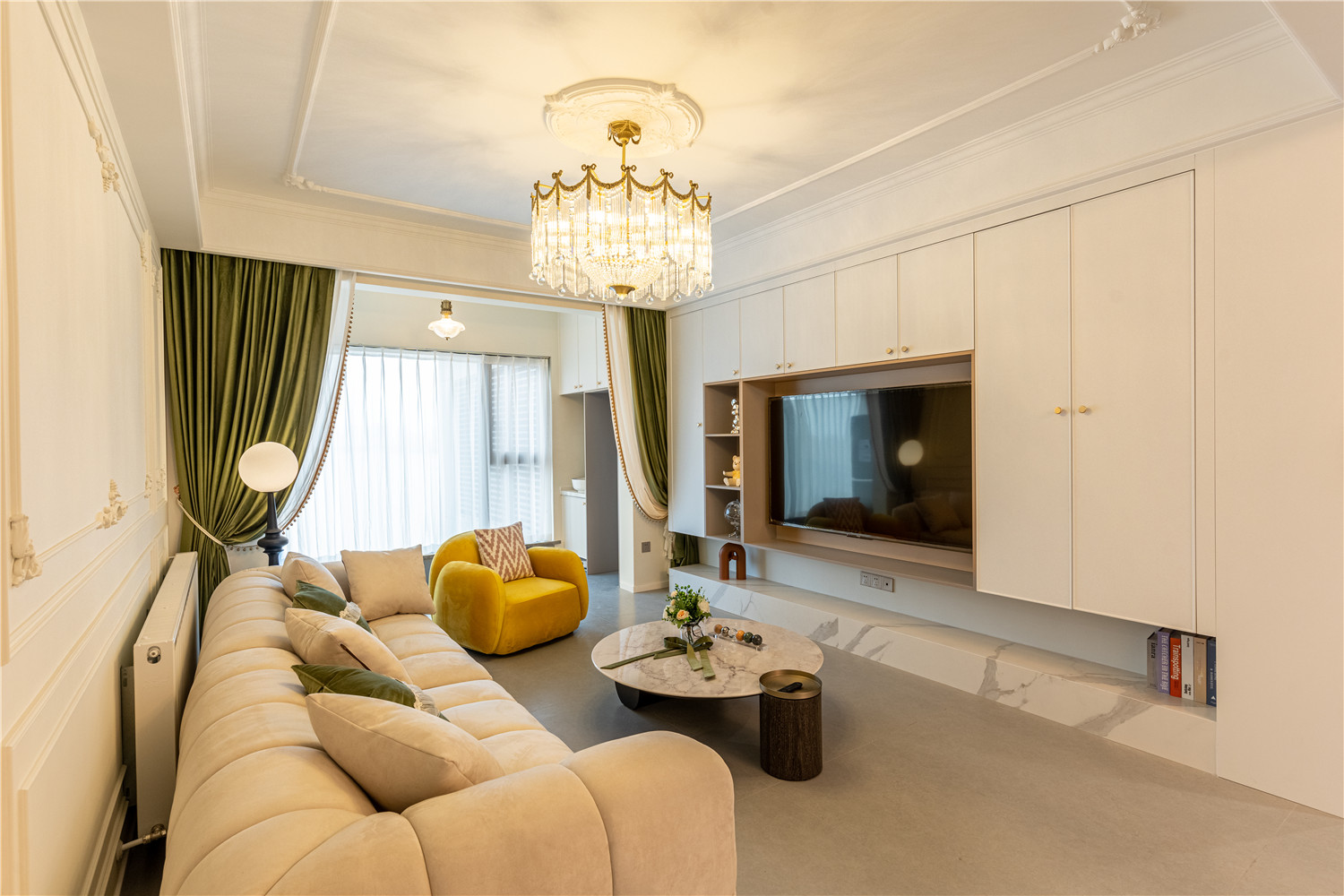 大面积的白色背景墙搭配上细节处的线条浮雕处理,低调耐看而又欧亚,亮色沙发则为空间增添跳跃趣味感 6686官方版app。
