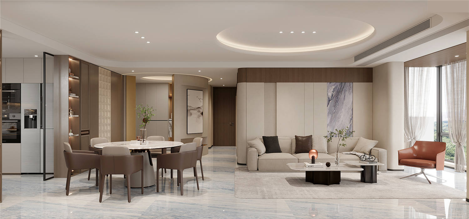 案例简介:本案从空间布局、线条的统一、块面的组合、材质的运用、家具比例间的明确合理化与空间美学因素的考量等,让经典的轻奢与现代的元素完美的结合,全方位呈现空间的品质。经过简化的轻奢风格,以还原现代生活空间为出发点,每个功能区都自然地散发着一种尊贵而又和谐的气质,精致完善的细节全部隐匿于空间之中。当生活的品味不再是表面的包装,内敛婉约的奢华更让人玩味无尽!
