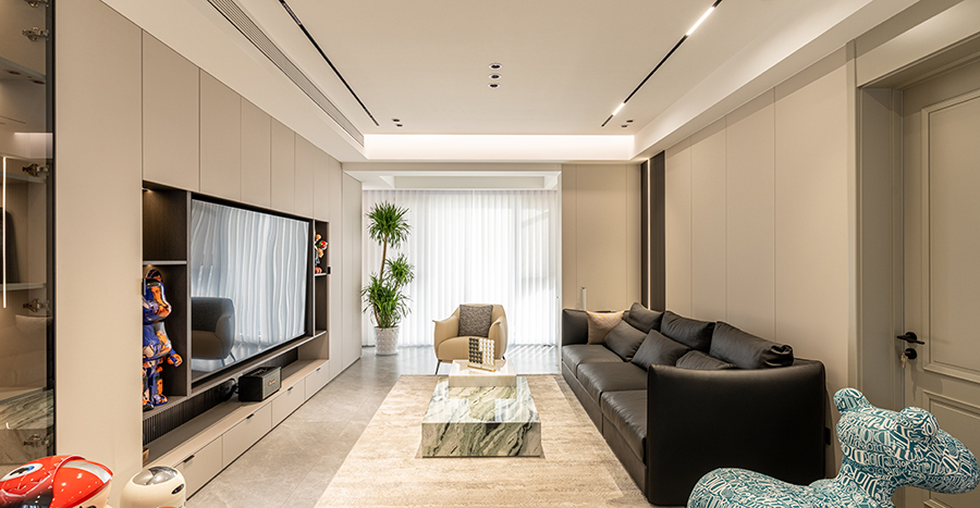 这套位于金悦天地的三居室住宅面积约为140㎡,业主对房屋原有的户型结构比较满意,因此设计师在对房屋进行规划设计时保留了房屋的原有结构,同时借助不同类型的隔断让各个功能空间分区更加明确,让整个房屋户型呈现出更加简洁舒适、干净利落的状态。再搭配以清新色彩、个性化装饰,让家居空间能够更具趣味感与精致感。