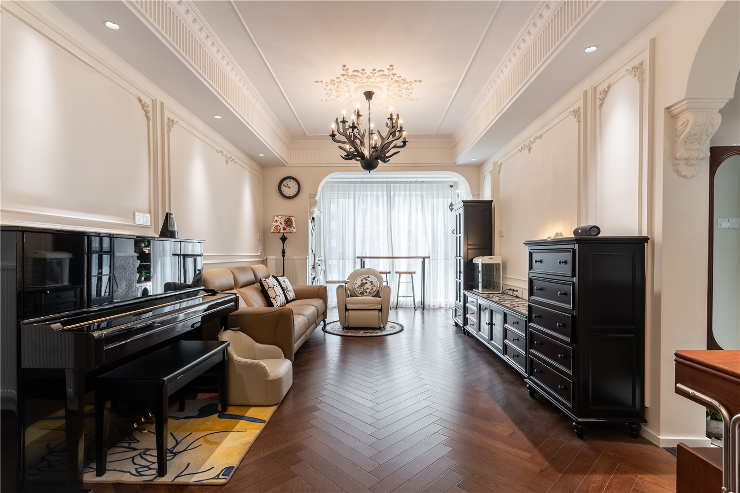 军运村这套300㎡的复式别墅空间十分宽敞,且南北通透,带有南向大阳台,整体户型优势较为明显,因此设计师在进行规划设计的时候 6686官方版app,充分利用了空间的优势,借助各种大面积窗户的设计,提升室内采光,为了扩大阳台空间,提升家居品质,设计师将客厅的阳台与卧室阳台直接打通,将整个阳台空间改造成视角极佳的观赏区,便于业主与家人观赏室外美景。