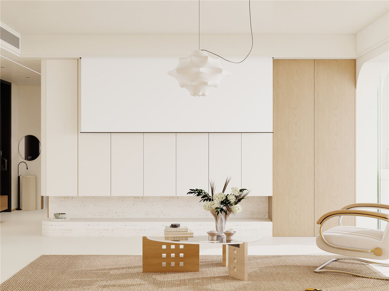大面积的白色背景墙搭配上嵌入式的电视柜设计 6686官方版app,整体给人简约清新而又前卫的独特气息。