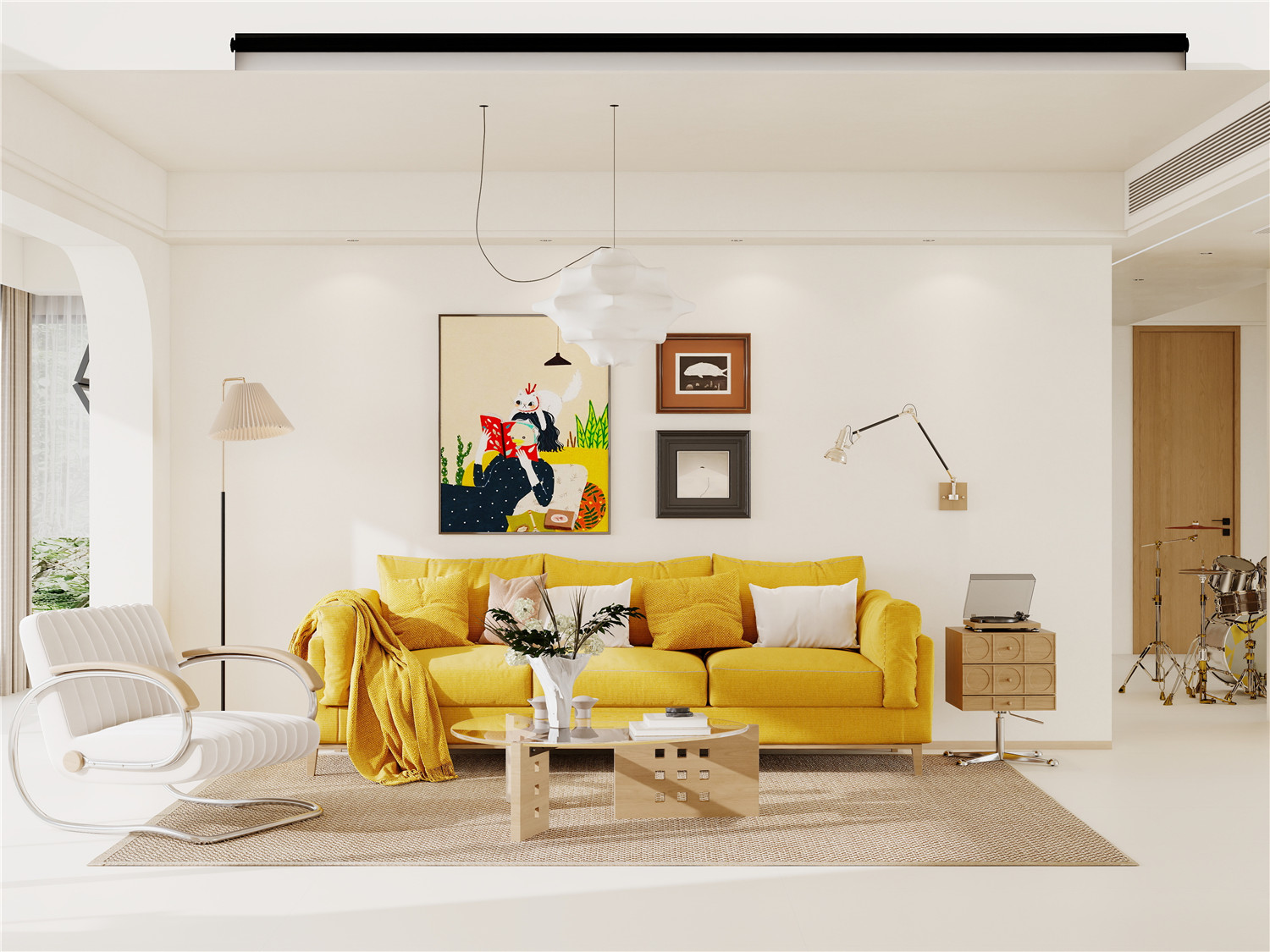 客厅区域借助莫兰迪色系进行装饰,强调一种朦胧的优雅氛围 6686官方版app。