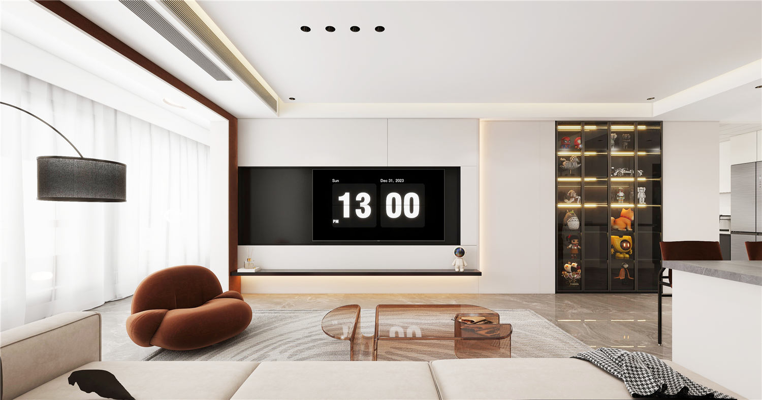 案例简介:本案例的主人公是一对即将走入婚姻殿堂的85后夫妇,其中男主人是画家,对艺术与时尚有着较高的追求,因此希望在家中设计中能够融入一些艺术感的元素。房屋的女主人作为教师则偏爱简约的元素,如何将简约与艺术进行融合是本次的设计要点。设计师根据夫妻二人的喜好选择了现代简约风进行软装,同时借助定制式家具与细节处理来提升整个家居环境的艺术感。
