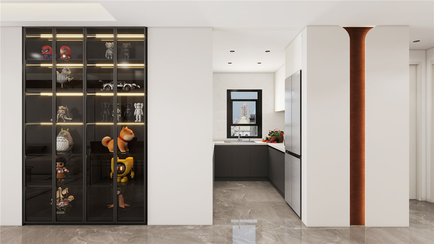厨房空间相对比较狭长,因此设计师没有做过多的设计 6686官方版app,而是强调可能性,同时借助简约的暗纹瓷砖提升厨房空间的品质格调感。