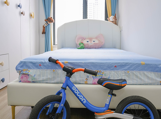 为了避免后续再进行返工,设计师在进行儿童房设计的时候没有使用到较多童真感的元素,而是借助黑白灰的经典配色强调空间耐看度与舒适度,以满足长期使用需求。