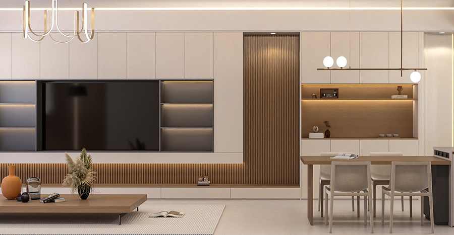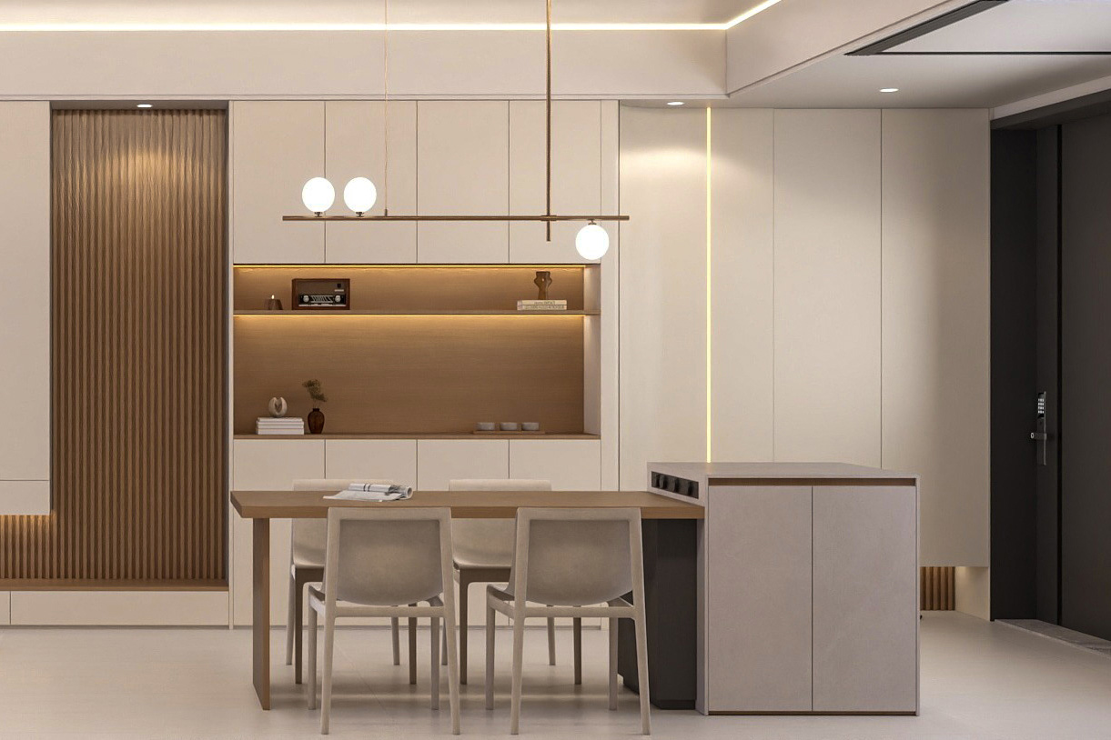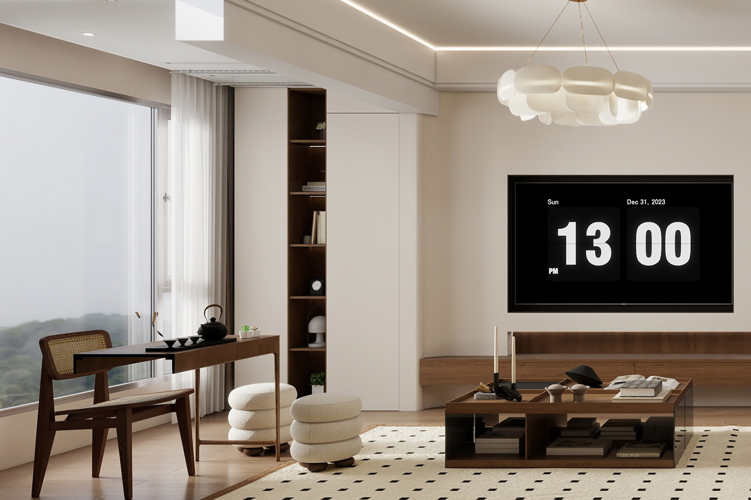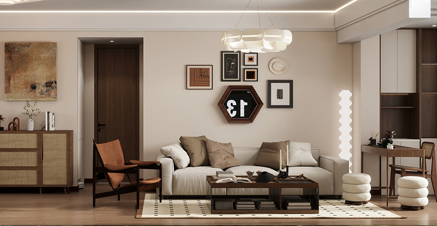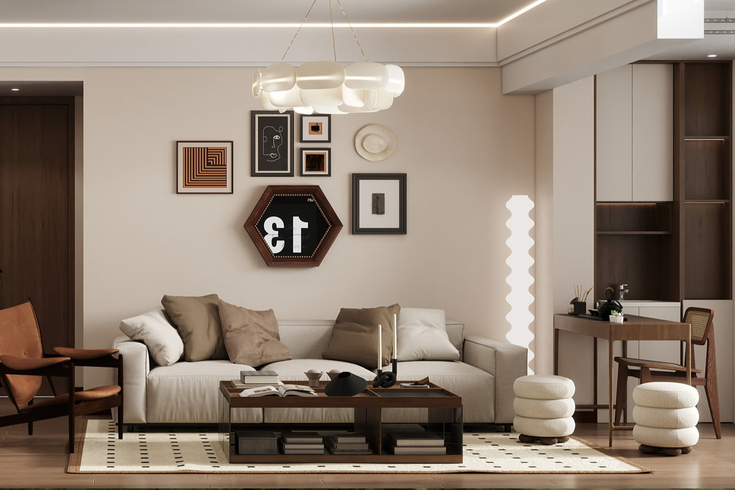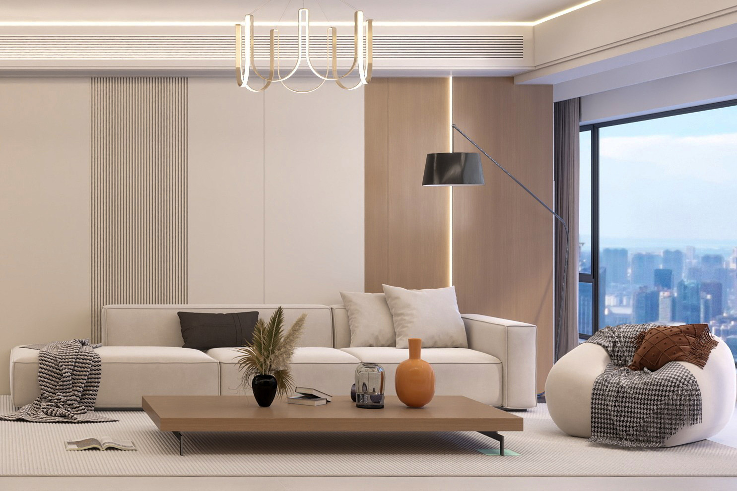 案例简介:在家装设计中有一种设计手法叫做留白,这指的是借助大面积的空白营造空间的韵味感,给人以无限遐想,这是简约风中最为常见的设计手法,能够让人在家居空间中更好的放空自己。而本案例的业主不喜欢设计繁琐的家居空间,希望通过最为简洁的元素打造出干净舒适的休憩空间,因此最终设计师为业主敲定了带有留白设计的简约风软装,通过合理的点缀搭配大面积留白来营造一种独特的优雅高级感。