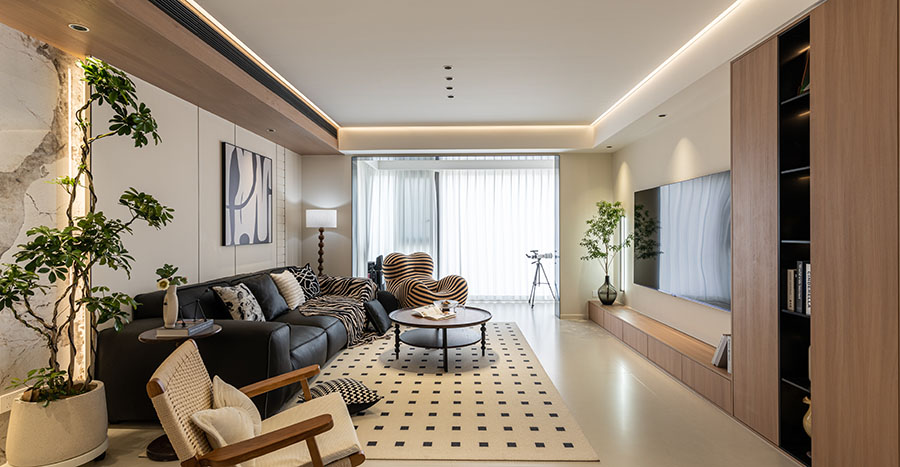 案例简介:本案例的业主是一位企业的高管,家中的常住人员除了业主夫妻二人之外,保姆也会在家中居住 6686官方版app,因此希望设计师能够单独规划出一块保姆居住的空间,同时将保姆的空间与其他人的空间分隔开,提升私密性,设计师通过与业主的沟通交流了解到,业主喜欢简洁有质感的元素,因此选用现代轻奢风进行装饰设计,利用材料的质感来提升室内环境的档次感与格调感。