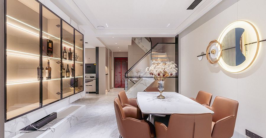 案例简介:由于本案例自带庭院,因此设计师在室内融入了多种绿植设计,从外观上保障庭院与室内设计的一致性 6686官方版app,同时通过对称性原则提升空间整合感,而装修风格的选择上,设计师则选用了相对比较耐看上档次的现代轻奢风,并借助高端材料的质感来提升整个别墅空间的档次感与品质感。
