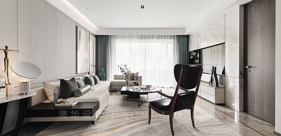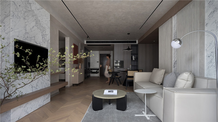 这套融创观澜府的四居室房屋建筑面积在143㎡左右,房屋的结构已经有了雏形,且业主为了节约装修花销,提议设计师在原有的户型结构上进行装修设计,因此设计师保留了原有的功能结构,同时借助色彩,材质等软装元素为房屋进行“包装” 6686官方版app,以保障装修效果,同时,为提升空间质感,设计师选用了大量“隐形”设计,如材质本身的纹理等,以起到在无形中装饰空间的作用。