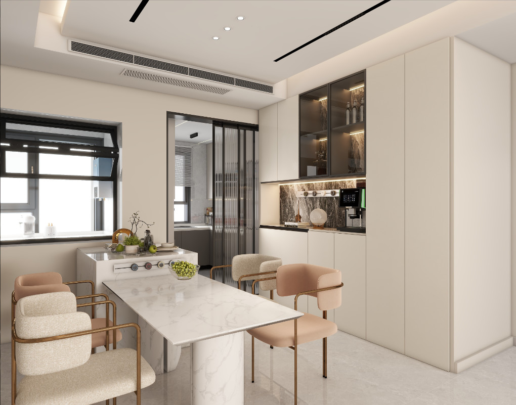 同鑫花园这套159㎡的三居室房屋整个的户型结构并不规整,但也相对比较常见,整体呈现“L”形,因此需要设计师更加合理的进行空间规划,避免由于户型结构不够规整带来的压抑感与局限感,根据业主的需求,设计师将主卧外部空间与主卧区域直接打通,并改造成一个卧室内的卫浴空间,提升主人日常洗漱的便利性,而为了满足业主的阅读,办公需求以及老人偶尔过来探望的居住需求,设计师将一个次卧改造成书房 6686官方版app,同时搭配上可收缩式家具,以满足使用需求。