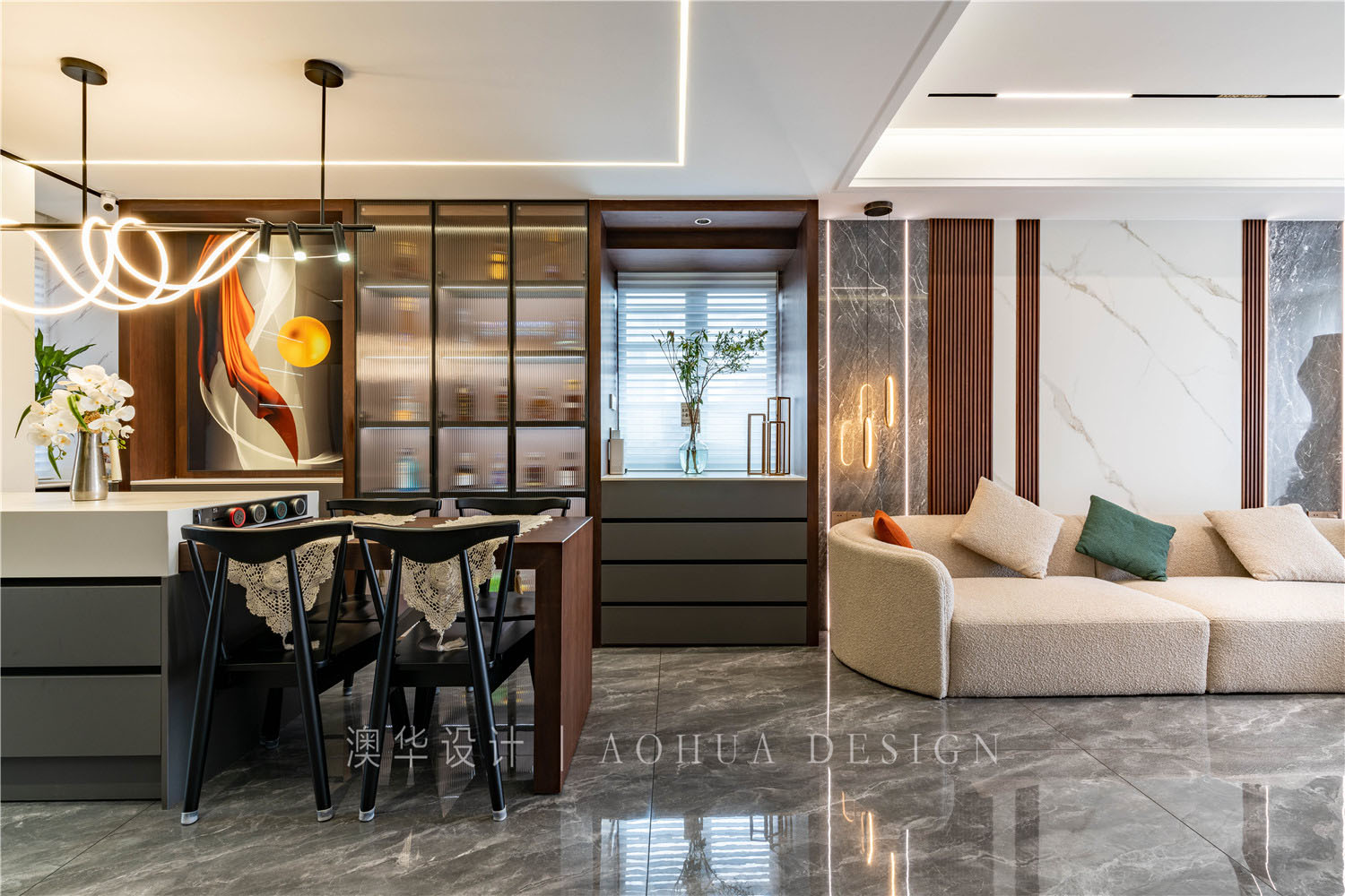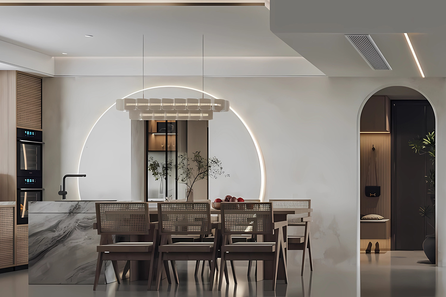 餐厅其实是将厨房台面延伸出来的角落进行再规划设计,同时借助艺术感灯饰进行点缀,实用且耐看 6686官方版app。