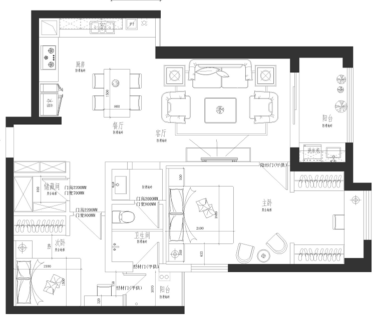 广电兰亭荣荟的这套二居室住宅面积在90㎡左右,原有的户型结构细小角落较多,加上原本房屋面积不大,因此需要对整体空间进行更加合理高效的利用。设计师在充分考虑业主使用需求的前提下,将次卧旁边的琐碎成一个迷你储物间,有效避免了空间的浪费。而开放式厨房的设计,则有效节省了室内空间的占用。