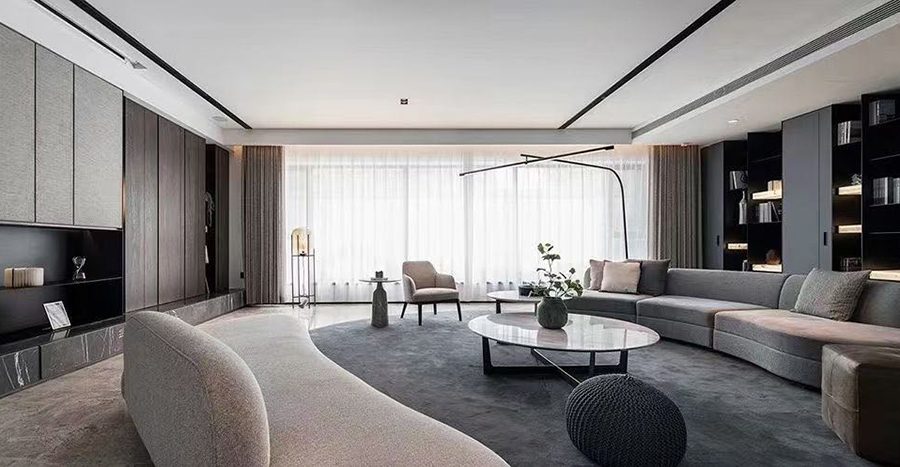 带有磨砂质感的纯色壁纸搭配上质感柔软的布艺沙发,让整个会客区域洋溢着舒适温馨气息。