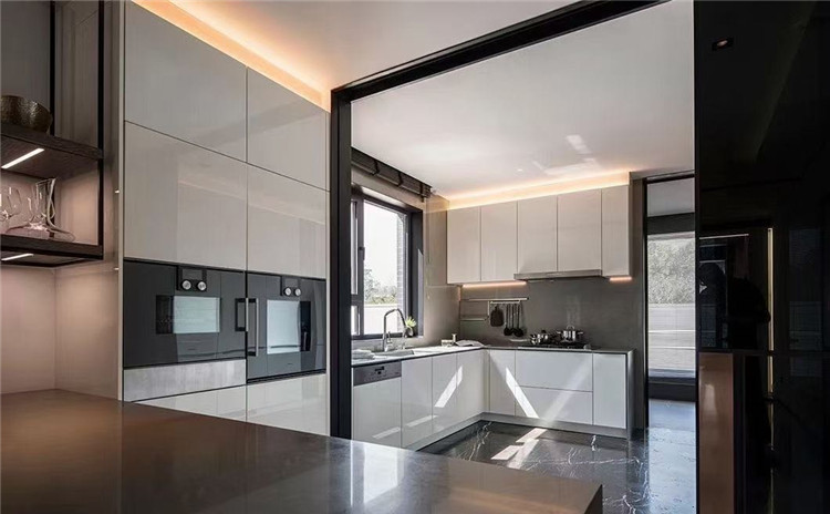 L形的设计保障了厨房空间的合理利用,有有效避免出现转身困难的情况 6686官方版app,深棕色木质储物柜与白色大理石台面的碰撞,则让空间层次感更为丰富。