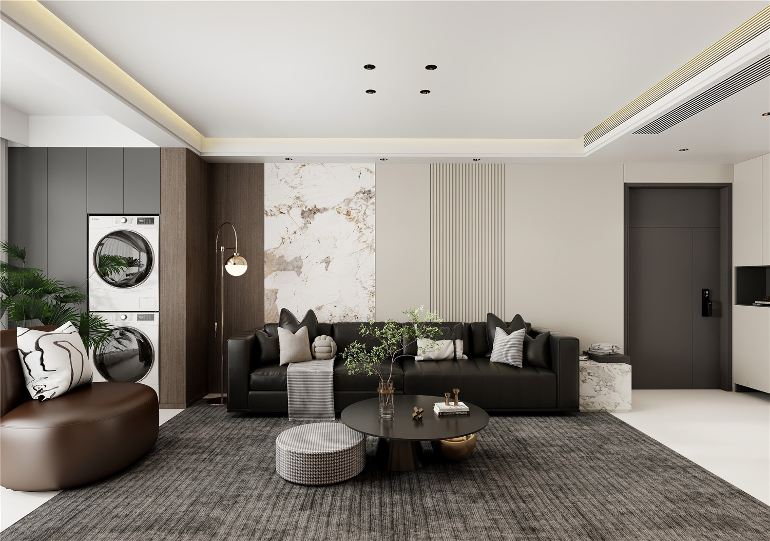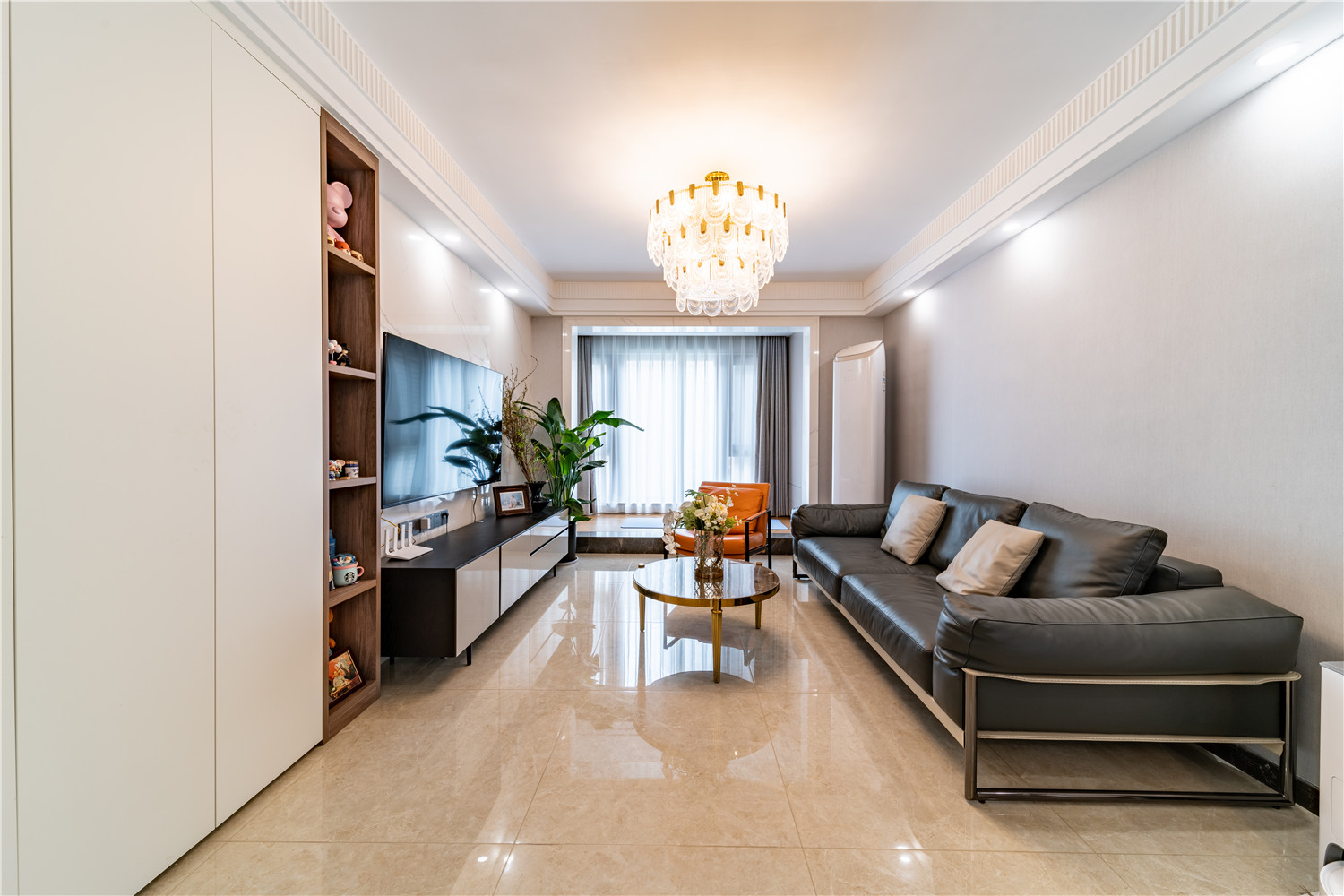 融创澜岸的这套105㎡的三居室主宰整体的户型结构相对比较平整,几乎没有太大的格局缺陷,因此空间设计难度不大,为了提升空间的实密度与美观度 6686官方版app,设计师将玄关处设置了一定的遮挡,避免室内景象直接映入来者眼前,同时,利用大面积落地窗设计,将室外的好风光进入室内,起到较好的室内装饰点缀效果。