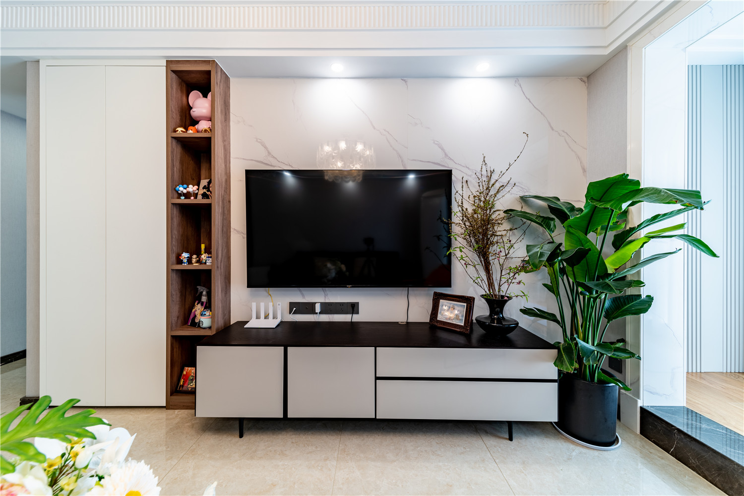大理石打造的电视背景墙清新而又不失高贵感 6686官方版app,搭配上对称式木质结构,平添一抹温厚柔和之美。
