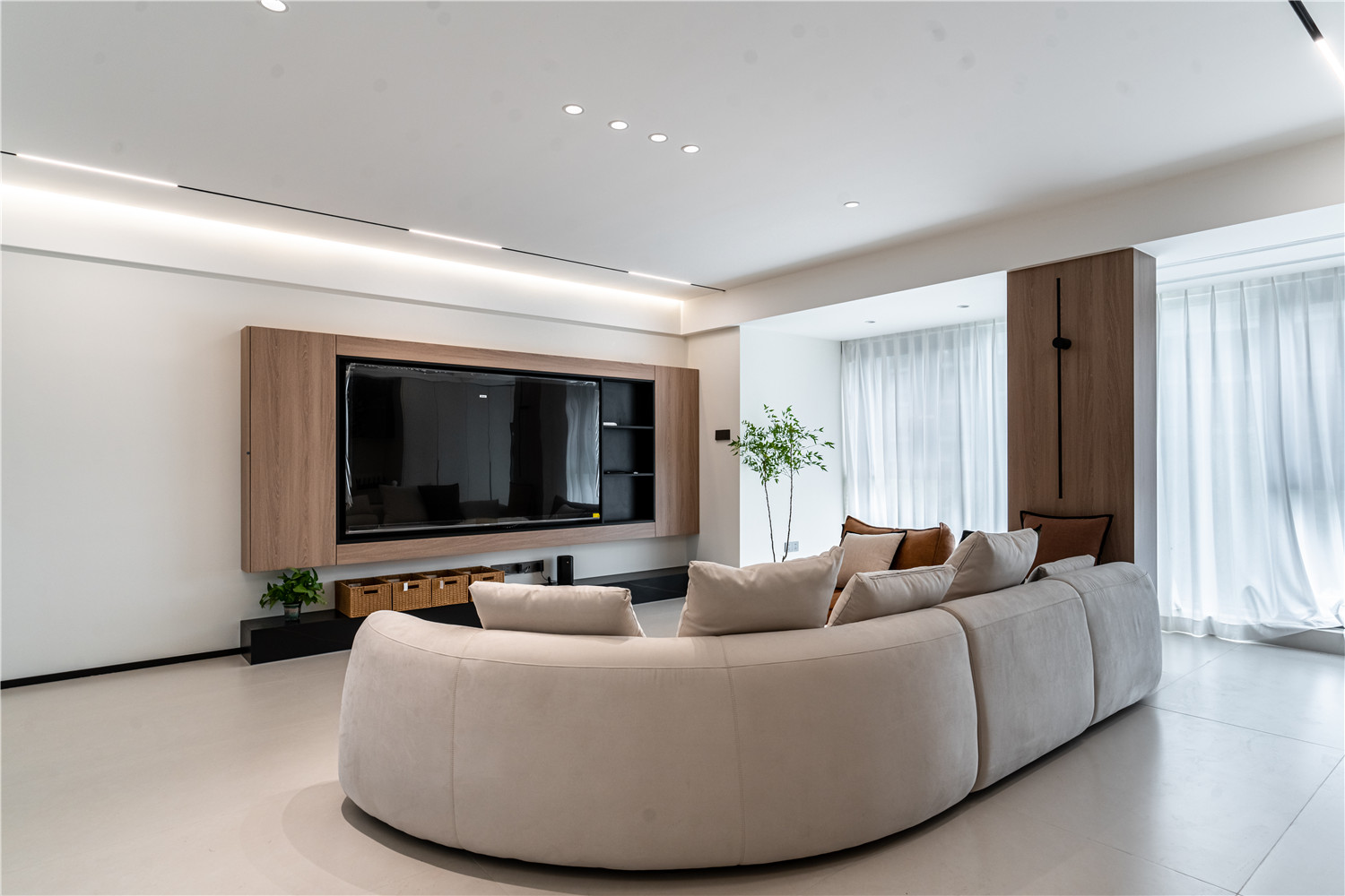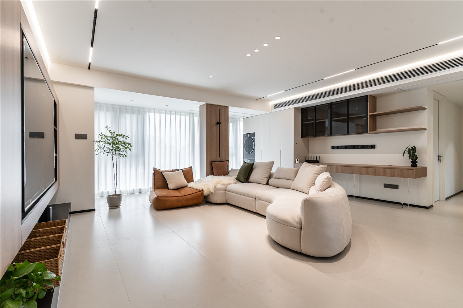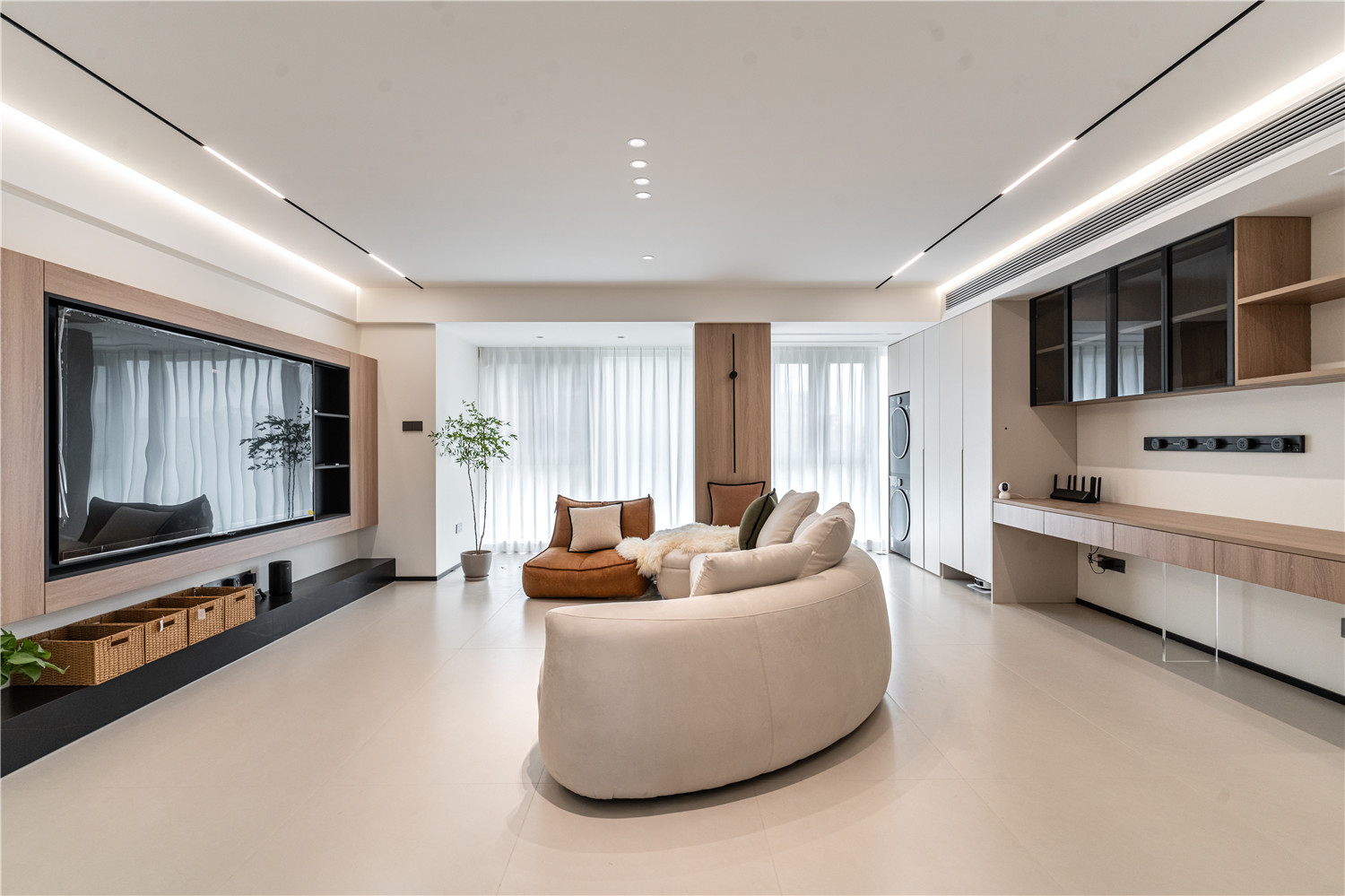 木质储物柜简约又耐看,无灯具式照明强调空间清新优雅高级感。